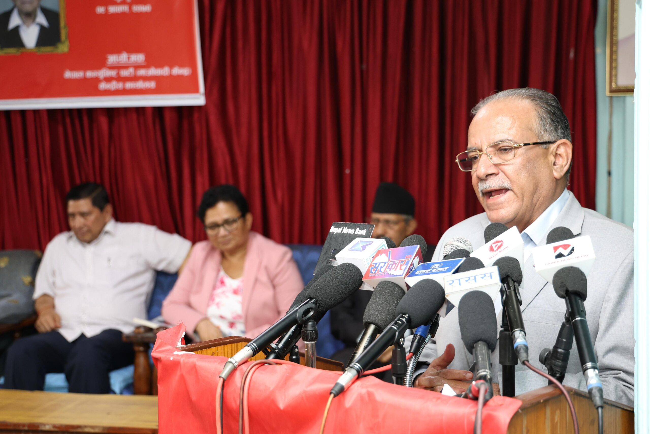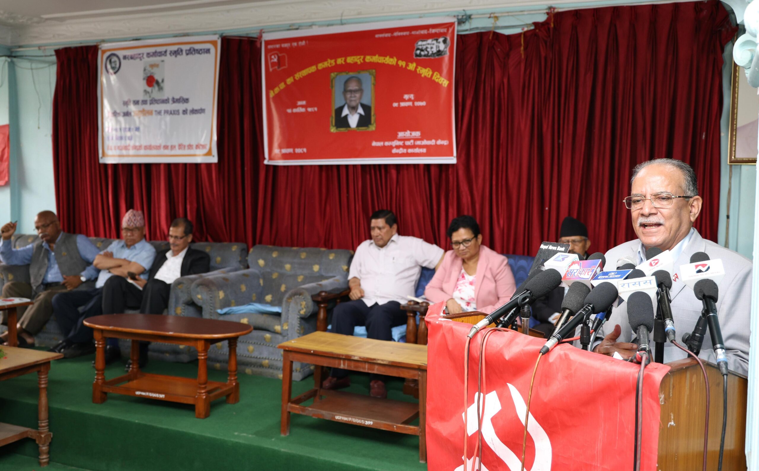 २०८१ साउन ९ ने.क.पा माओवादी केन्द्रको कार्यालयको सभा हल, पेरिस डाँडा, कोटेश्वरमा आयोजित नरबहादुर कर्माचार्य स्मृति सभा तथा प्रतिष्ठानको त्रैमासिक वैचारिक जर्नल अनुशीलन THE PRAXIS को लोकार्पण समारोहमा लाई सम्बोधन गर्नुहुँदै पार्टी अध्यक्ष तथा पूर्व प्रधानमन्त्री पुष्पकमल दाहाल प्रचण्ड । तस्बिर : प्रदीपराज वन्त, रासस
