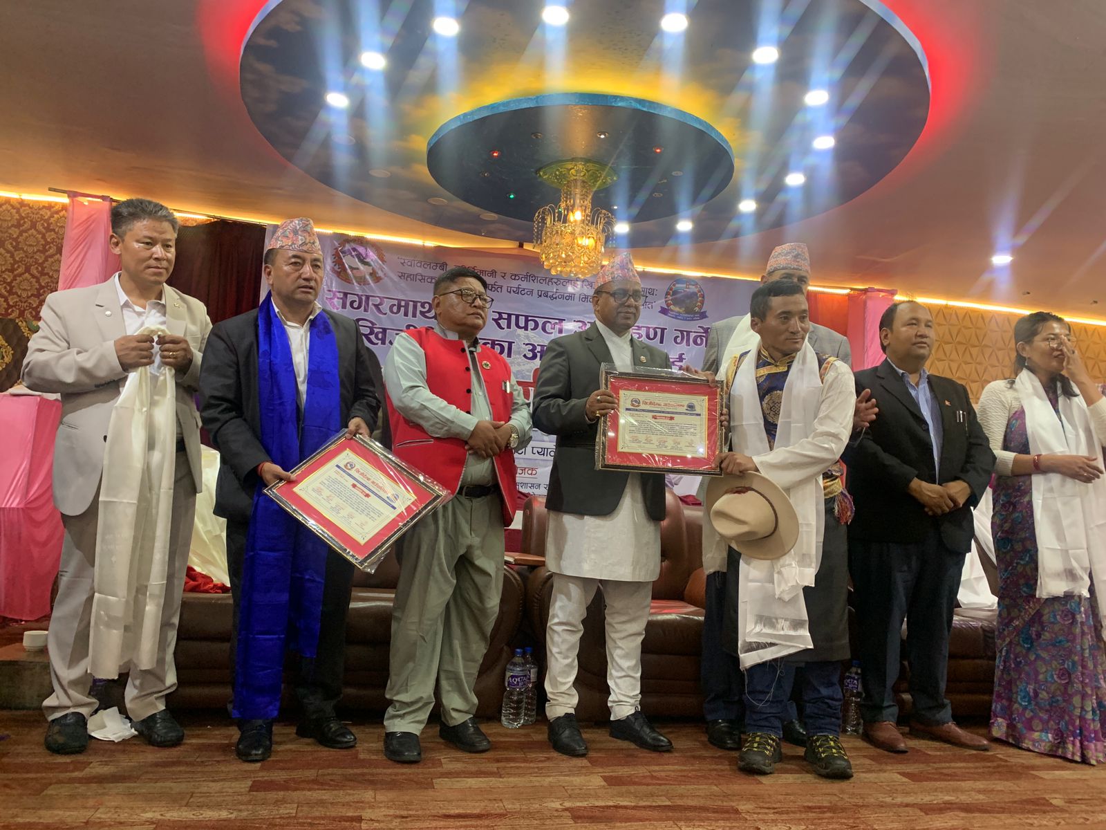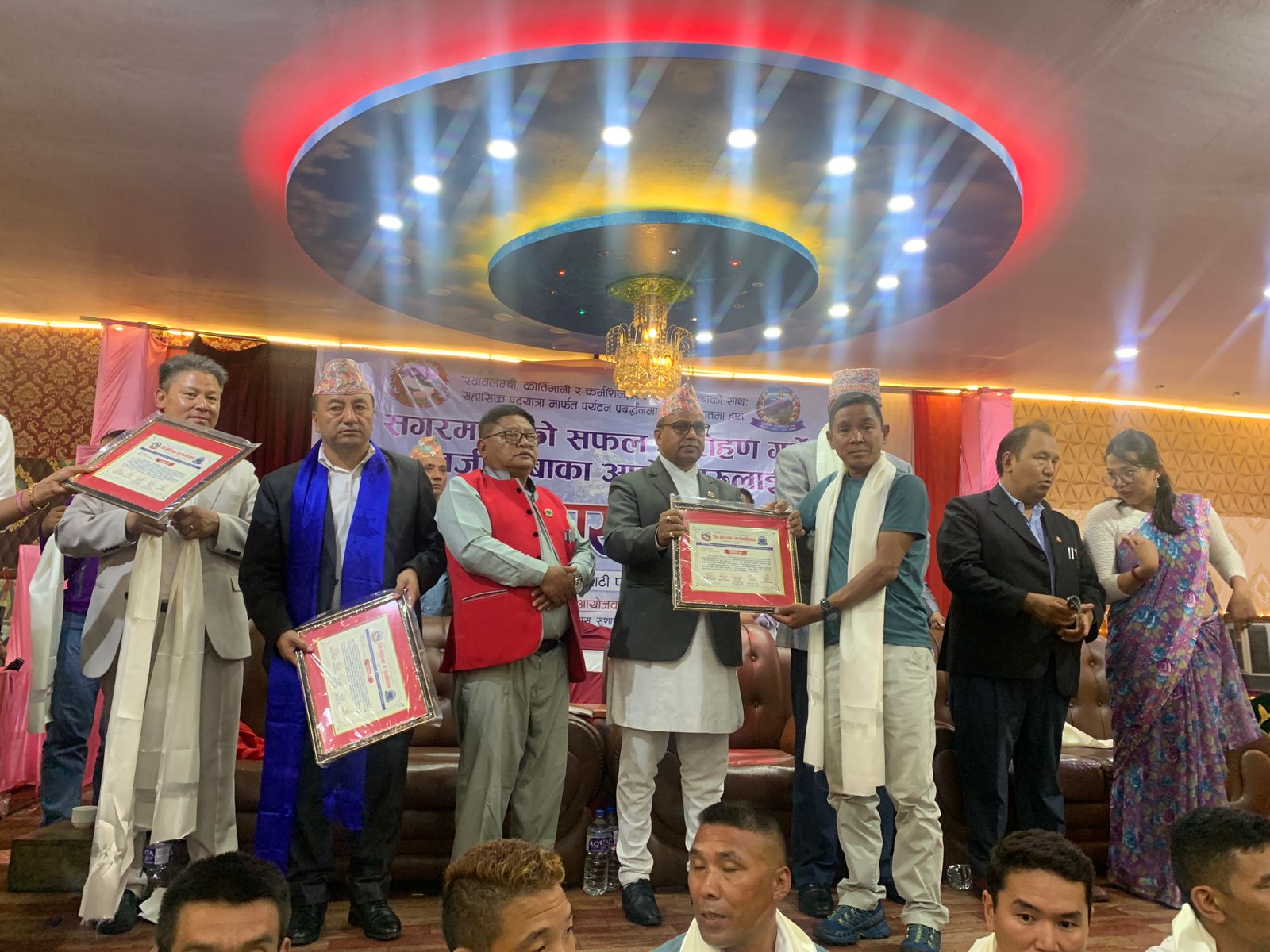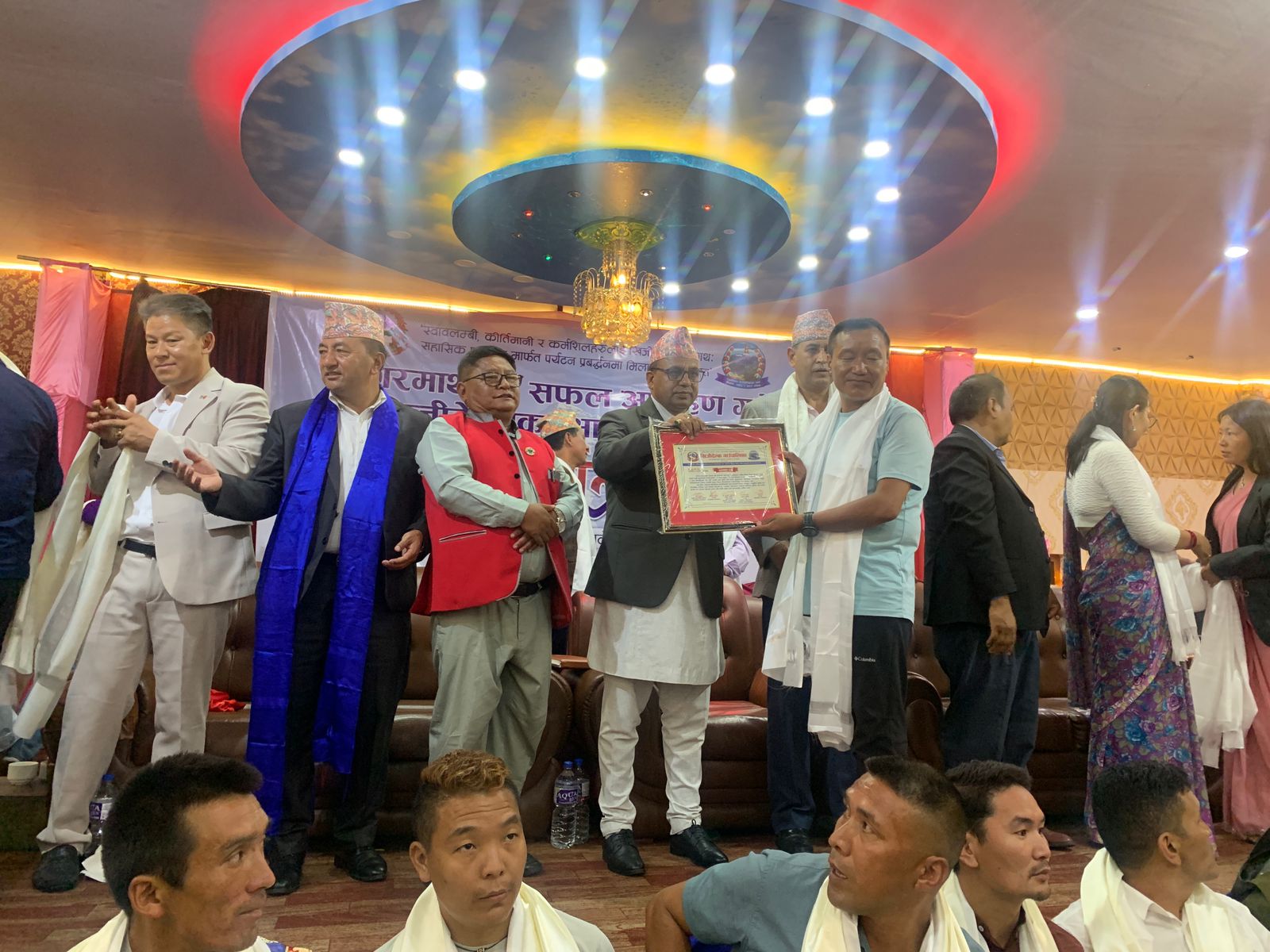 प्रमुख आतिथ्यता पर्यटनमन्त्री पाण्डले ‘स्वालम्बी कीर्तिमानी र कर्मशिलहरुलाई खिजीदेम्बाको साथ सहासिक पदयात्रामार्फत पर्यटन प्रबद्र्धनमा मिलाऔँ हातमा हात’ नाराको उच्चारण गर्दै गाउँपालिका अध्यक्ष गम्बु शेर्पाको सभाध्यक्षतामा काठमाडौंको ज्योति पाटी प्यालेसमा सगरमाथाको सफल आरोहण गर्ने खिजीदेम्बाका आरोहीहरुलाई सम्मान गरेको हो ।