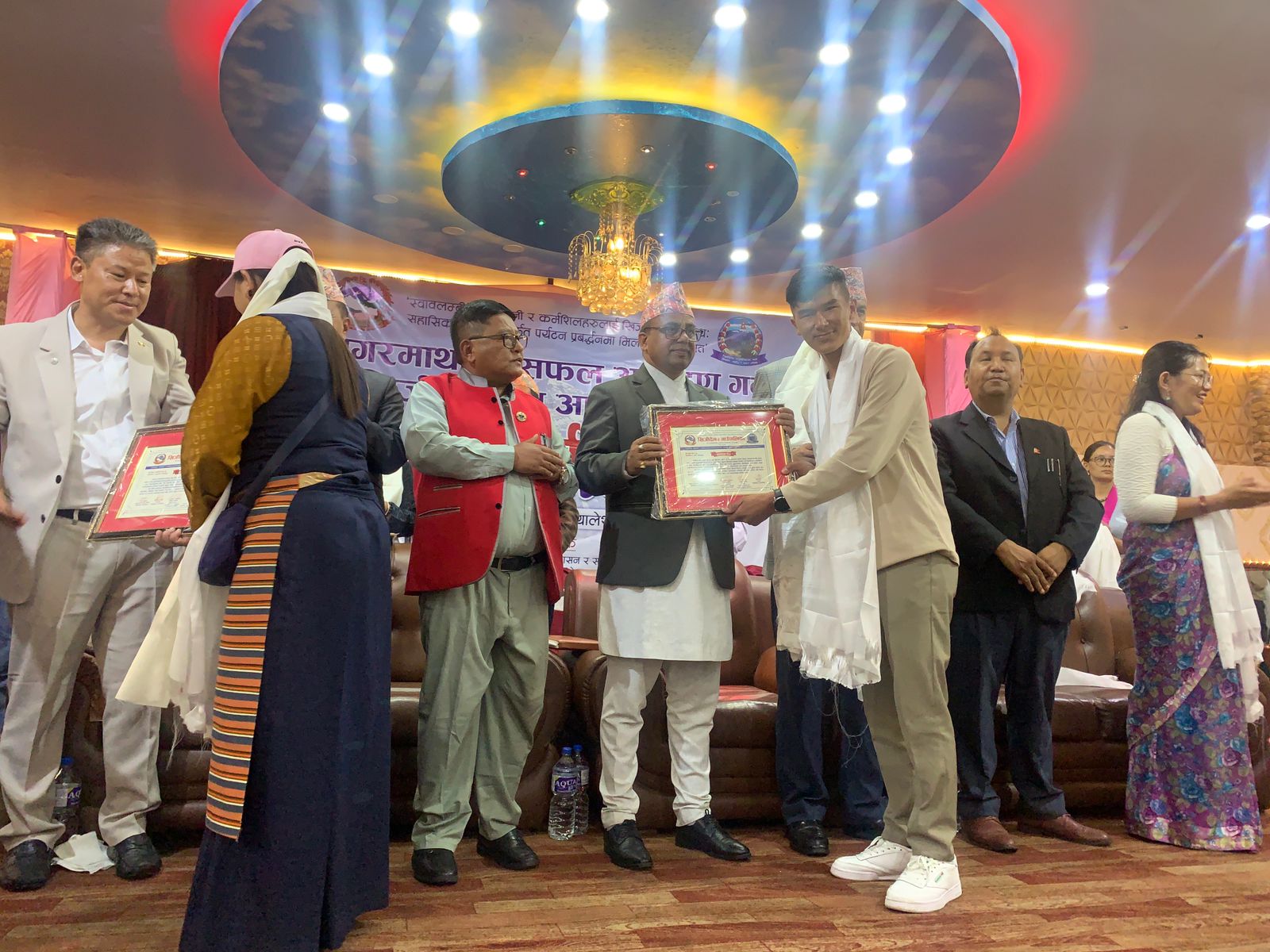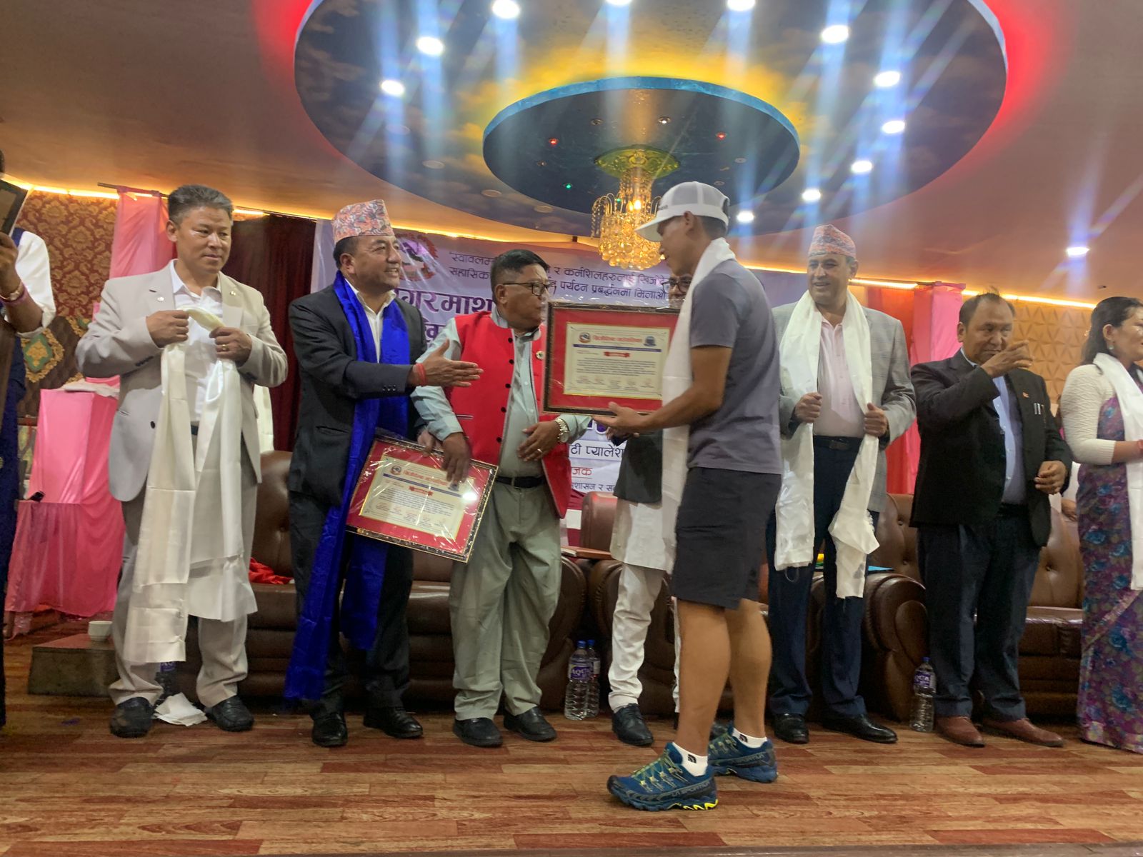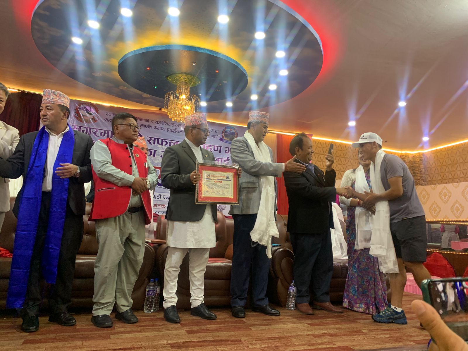प्रमुख आतिथ्यता पर्यटनमन्त्री पाण्डले ‘स्वालम्बी कीर्तिमानी र कर्मशिलहरुलाई खिजीदेम्बाको साथ सहासिक पदयात्रामार्फत पर्यटन प्रबद्र्धनमा मिलाऔँ हातमा हात’ नाराको उच्चारण गर्दै गाउँपालिका अध्यक्ष गम्बु शेर्पाको सभाध्यक्षतामा काठमाडौंको ज्योति पाटी प्यालेसमा सगरमाथाको सफल आरोहण गर्ने खिजीदेम्बाका आरोहीहरुलाई सम्मान गरेको हो ।