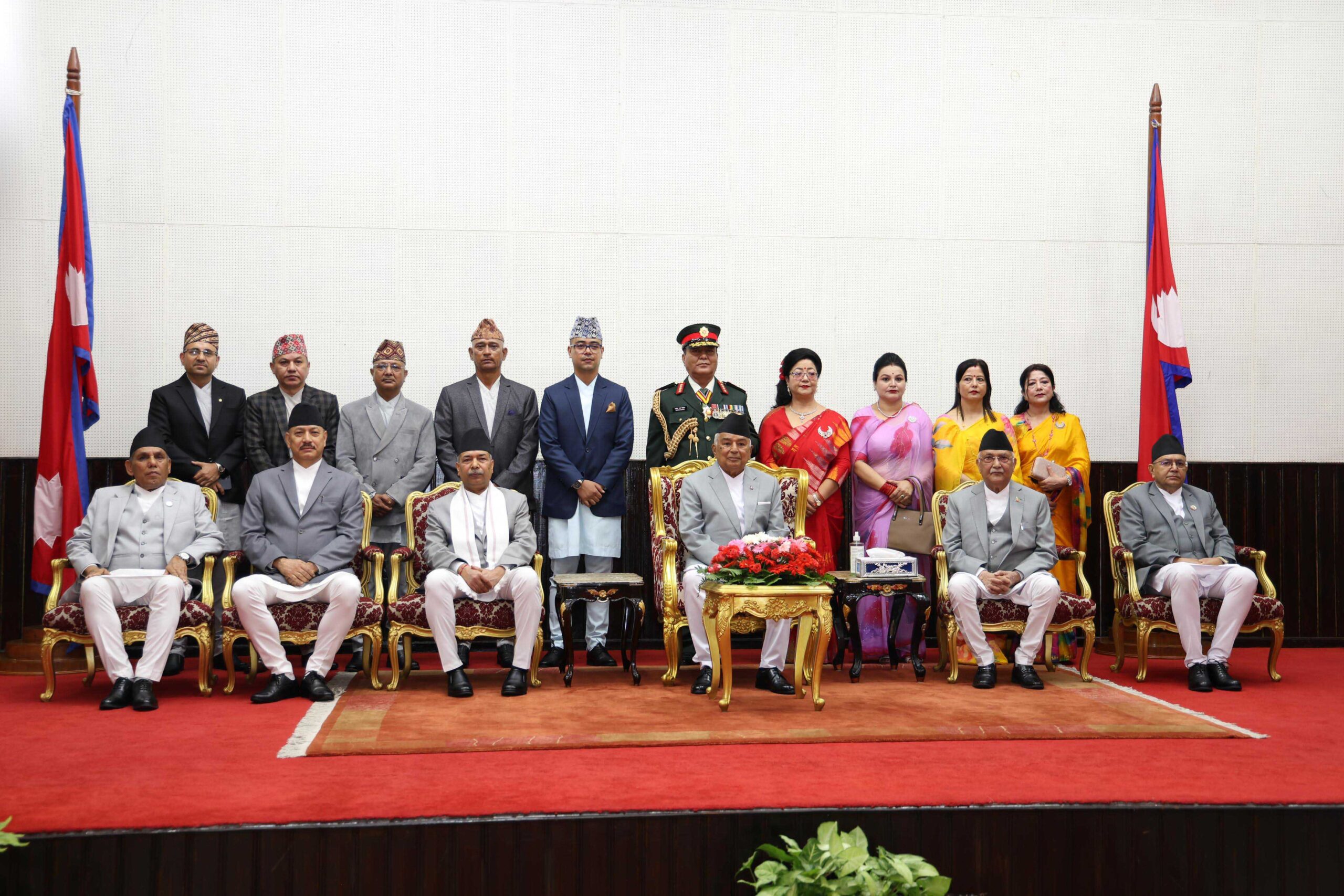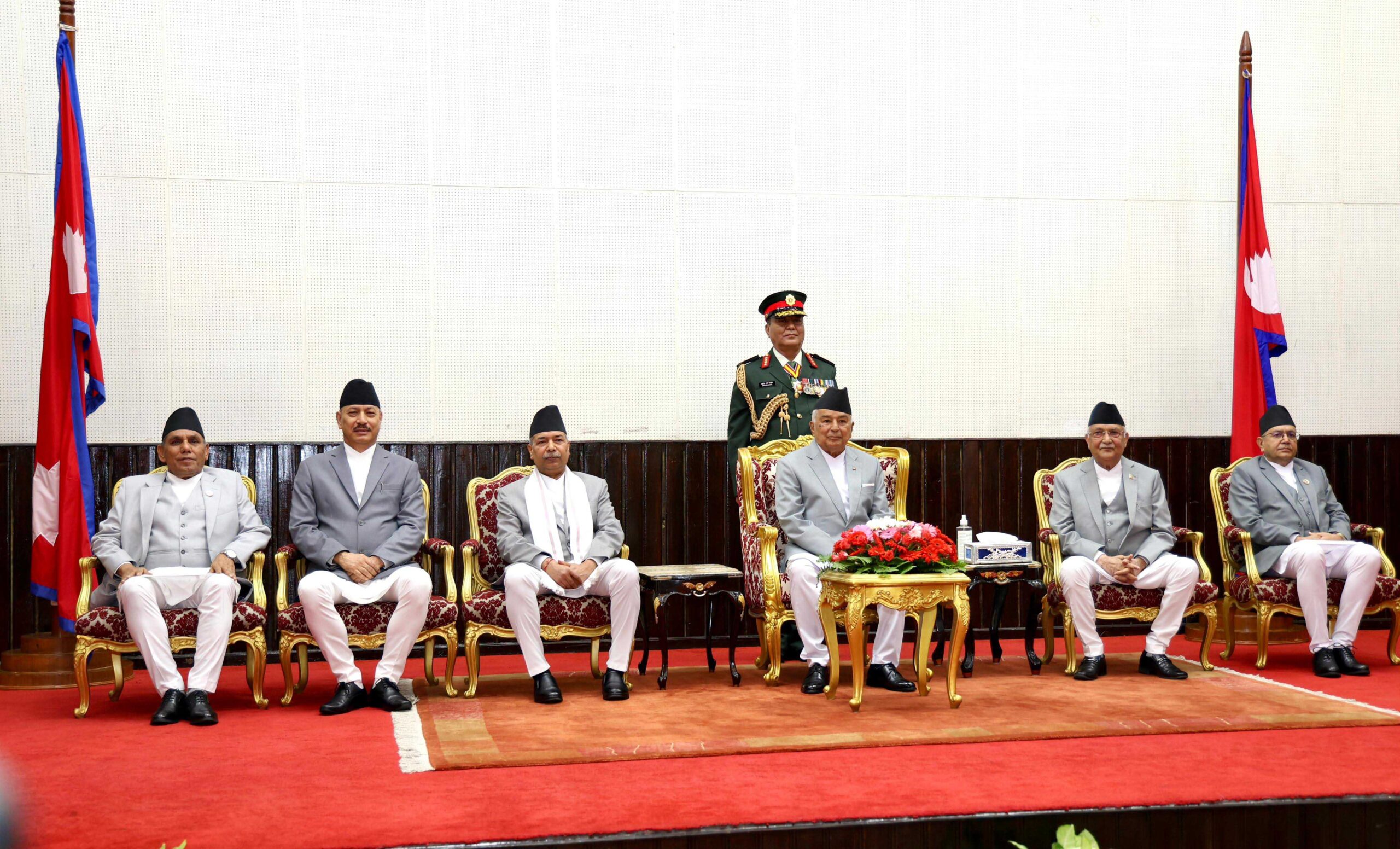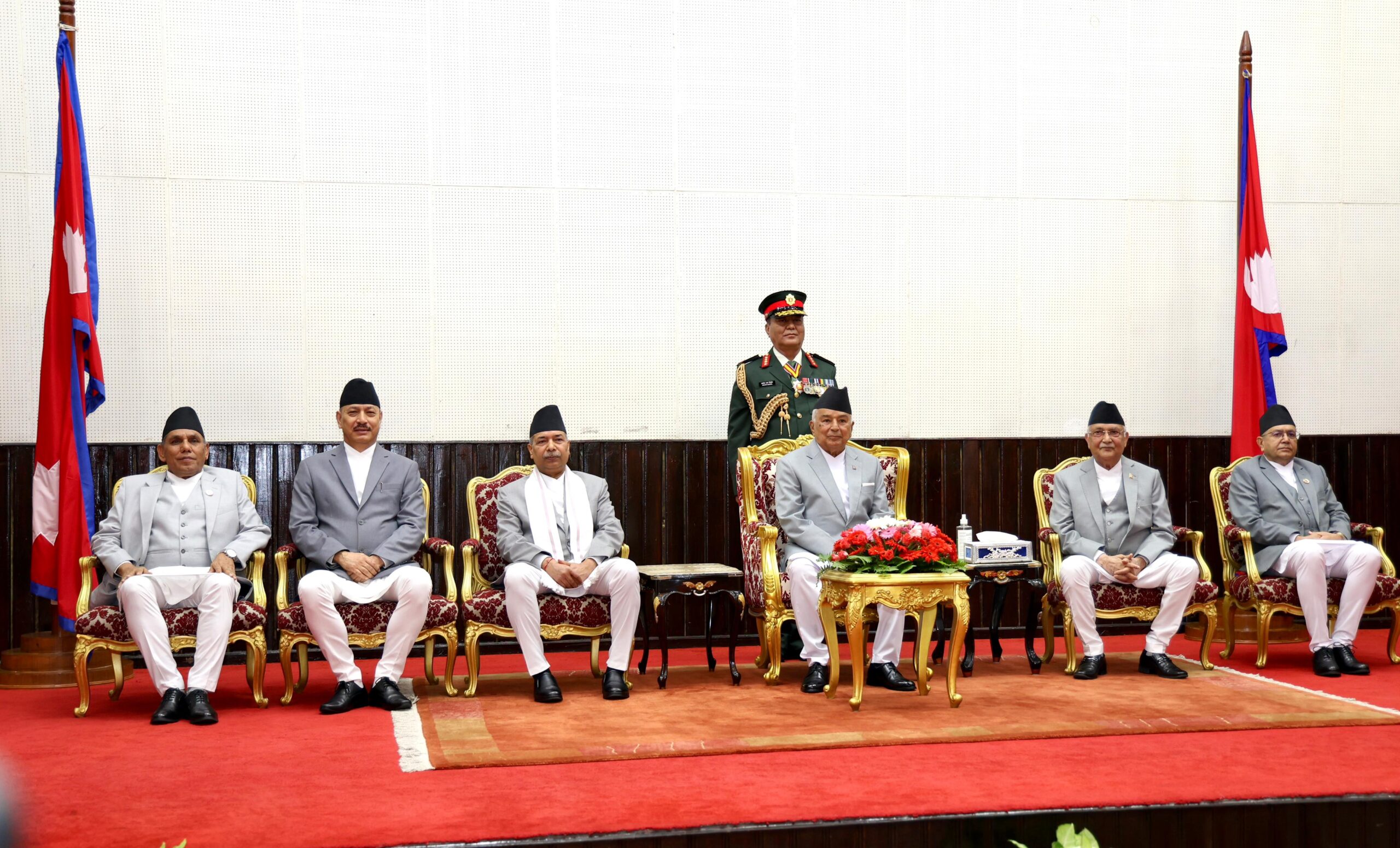 भदौ २४ काठमाडौं नेपाली सेनाका नवनियुक्त प्रधान सेनापति अशोकराज सिग्देललाई शपथ गराउनुहुँदै राष्ट्रपति रामचन्द्र पौडेल । । तस्बिर : प्रदीपराज वन्त, रासस