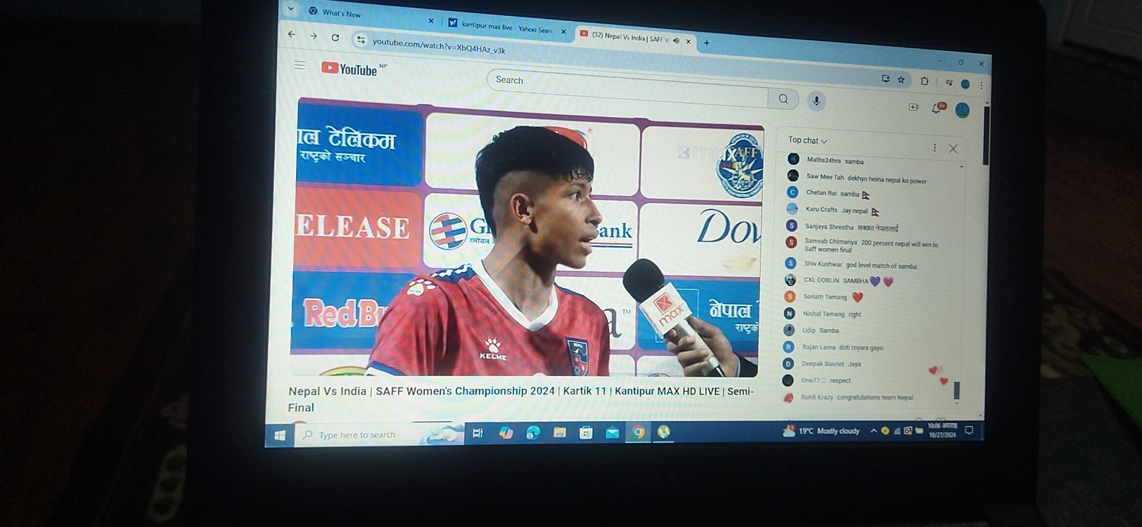 काठमाण्डौ ११ कार्तिक आज दशरथ रंगशालामा भएको साफ वुमन्स फुटवल च्याम्पियनसिपमा फाइनलमा पुगेको छ । पहिलो ९० मिनेटको खेलमा बराबरी खेल सकिएको थियो त्यस पछि निर्णायक खेल ट्राइब्रेकरमा नेपालले भारतलाई ४–२ ले हराउँदै नेपाल फाइनल प्रवेश गरेको हो।