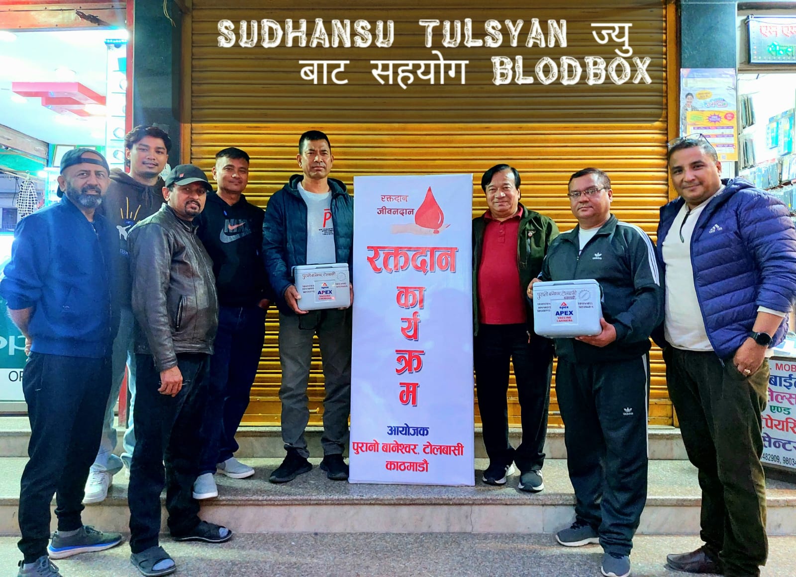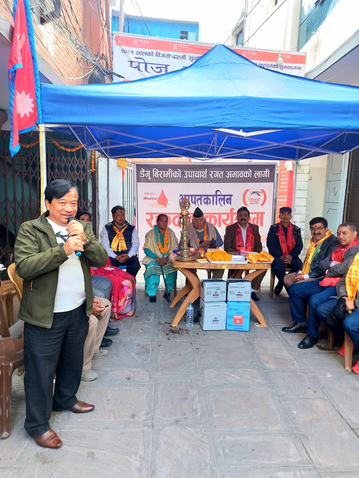 १ मंसीर काठमाण्डौ, पुरानो बानेश्वर टोलबासी काठमाडौको आयोजनामा आज आपतकालीन रक्तदान कार्यक्रम सम्पन्न भएको छ । कार्यक्रमको अध्यक्षता सामाजिक अभियन्ता तथा कार्यक्रम संयोजक श्री सुवास ढकालले गर्नु भएको थियोे भने प्रमुख अतिथिमा जेष्ठ नागरिक तथा समाजसेवी श्री राधेश्याम थापा तथा विशेष अतिथिमा बागमती प्रदेशका आन्तरिक मामिला तथा कानुन मन्त्री मा.सुरज लामिछाने लगायत विभिन्न वडाका जनप्रतिनिधि, प्रहरीका उच्च ओहोदाका प्रतिनिधि, वडाबासी र संचारकर्मीहरुको सहभागितामा सम्पन्न भएको थियो । सो कार्यक्रममा वडाका दुई जेष्ठ नागरिक राधेश्याम थापा र श्रीकुमारी मानन्धरलाई दोसल्लाका साथै मायाको चिनो प्रदान गरि सम्मानित गरिएको थियो । सो रक्तदान कार्यक्रममा युवा युवती देखि बुढापाका सम्का गरी जम्मा ७६ जना रक्तदाताहरुले रक्तदान गर्नु भएको थियो । यो रक्तदान अहिले फैलिरहेको डेङगुकोलागि आबश्यक पर्ने भएकोले यो आपतकालिान रक्तदान कार्यक्रम गर्नु पर्ने भएको रक्तदाता तथा अधियान कर्र्मि लक्ष्मण जोशी तथा कार्यक्रम सहयोगी महेश पोखरेलले बताउनु भयो ।