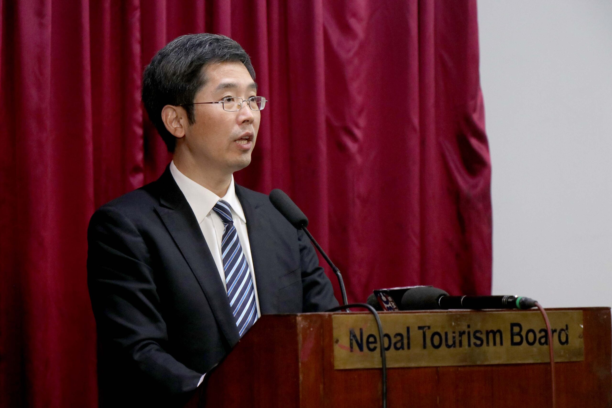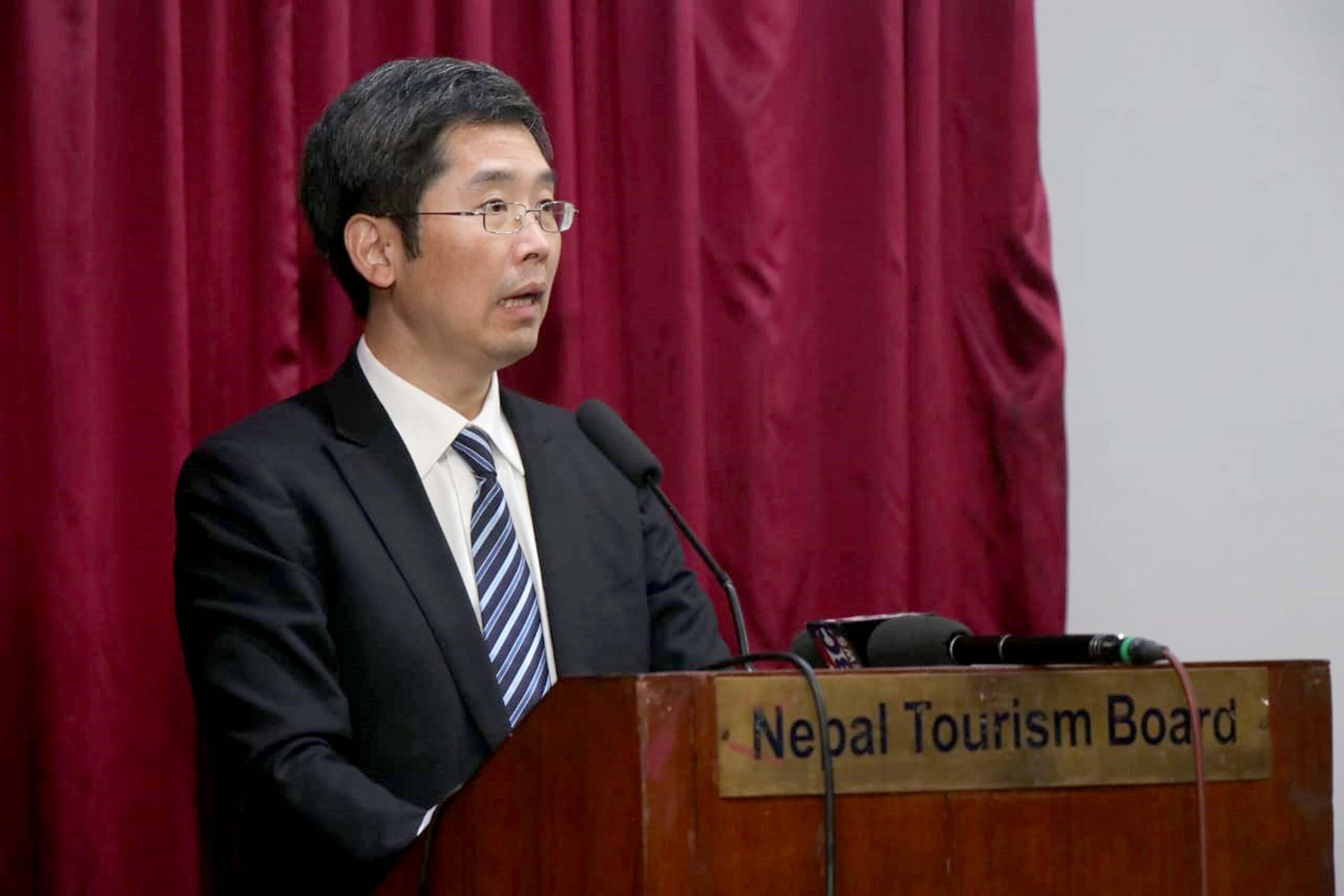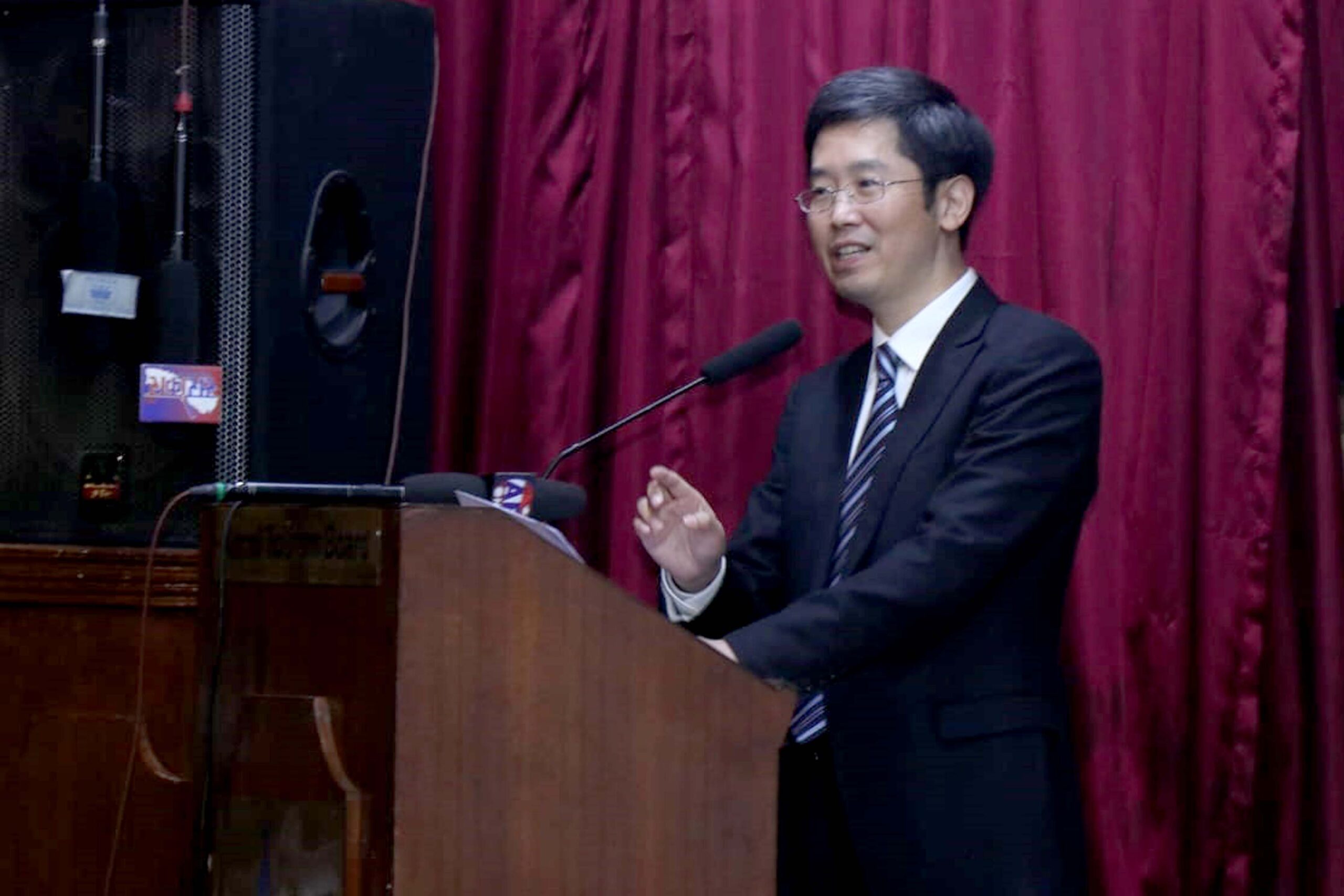 नेपालका लागि चिनीया राजदुतावासमा डेप्टी चिप्फ अफ मिशन वान सिन यो तस्वीर दोश्रो ड्रागन बोट रेस फेस्टीवलको पत्रकार सम्मेलनमा लिएको तस्वीर हो ।
