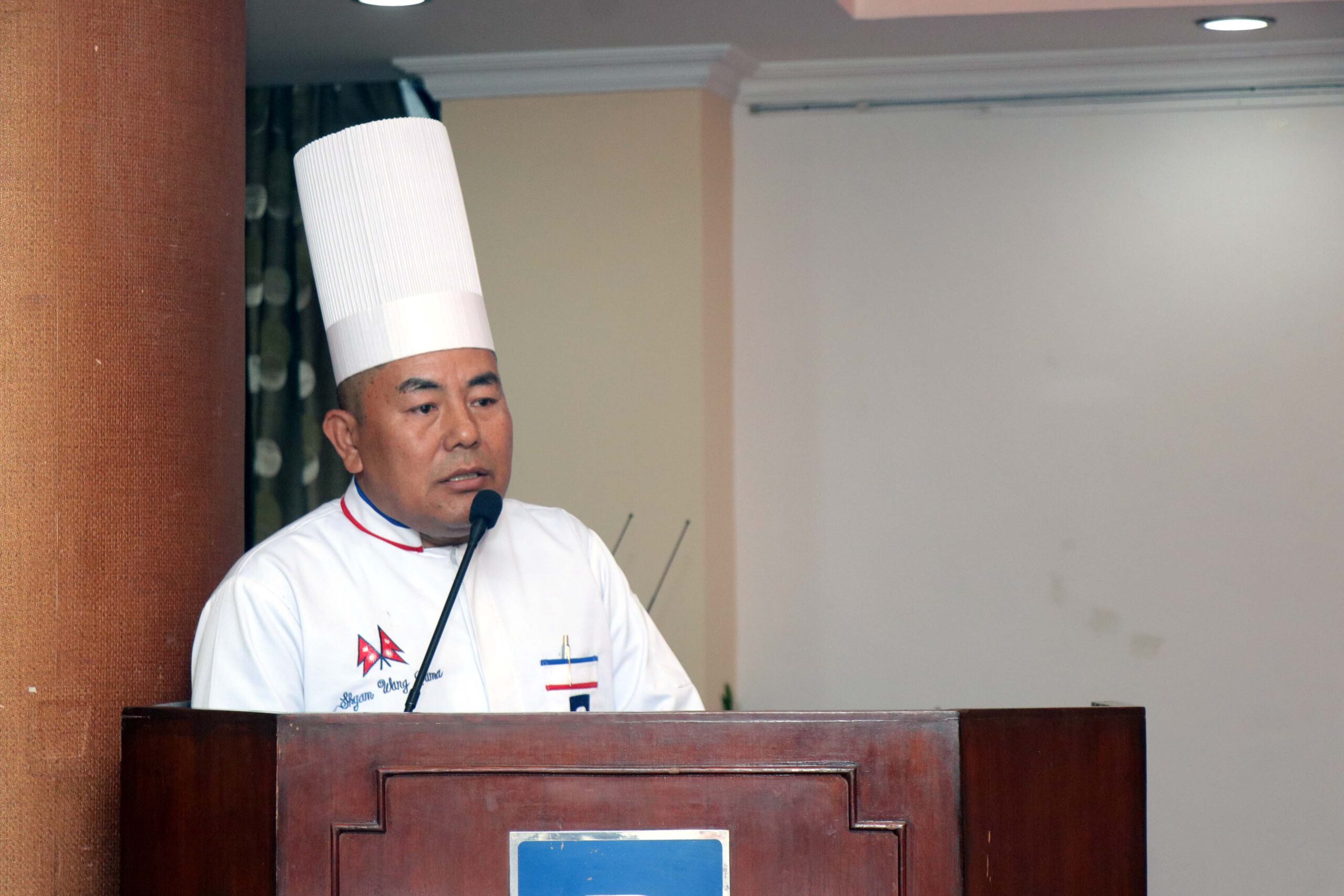 श्याम लामा सेफ तथा निवर्तमान अध्यक्ष सेफ यसोसियसन अफ नेपाल यो तस्वीर होटल एसोसियसन अफ नेपाल हान प्रत्रकार सम्मेलनमा खिचिएको हो ।