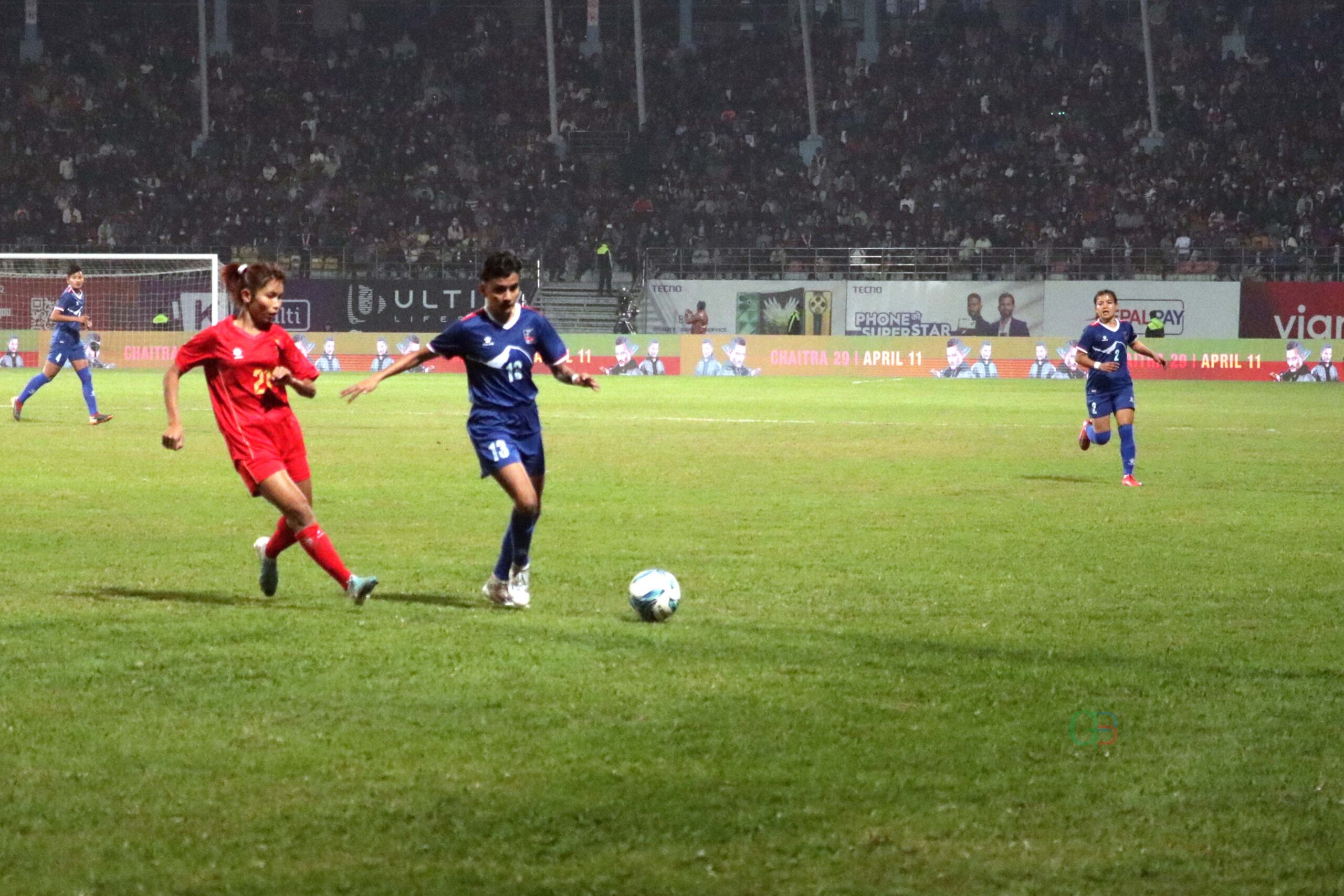 एन्फाले चार देशहरु किर्गिस्तान लेवनान म्यानमार लाई बोलाएर गरिएको चार देश सहभागी इन्टरनेशनल महिला फुटवल आयोजना गरेको खेलमा पनि नेपालले दोश्रो भए रै चित्त बुझाउनु प–यो । जसमा दशरथ रंगशाला १५ हजार भन्दा वढी दर्शकको माझ भएको खेलमामा महिला फुटवल च्याम्पीयन सिप बन्न सकेन । पहिलो हाफमा खेलाडिहरुले म्यानमारलाई राकेको थियो र दुई पटकको मौका पाएकोमा गोल गर्न नसक्कु दोश्रो हाफमा गोल खानु प–यो ।