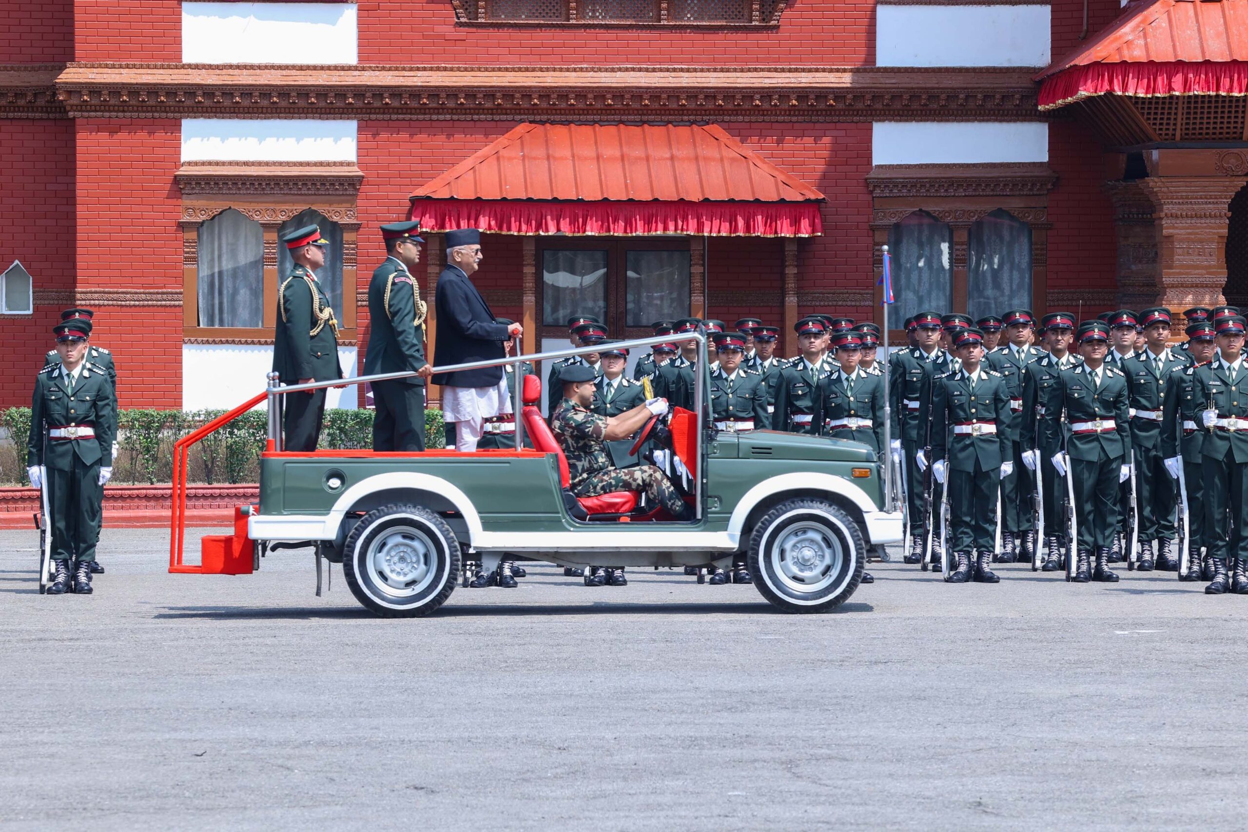 भक्तपुर २९ शुक्रबार, सम्माननीय प्रधानमन्त्रीको के पी शर्मा वलीबाट आज नेपाली सेनाको अधिकृत क्याडेट तालिमको आयुक्त पद प्रदान तथा कवाज प्रदर्शनको अवलोकण खरिपाटी भक्तपुर गर्नु भई सम्बोधन पनि गर्नु भयो ।