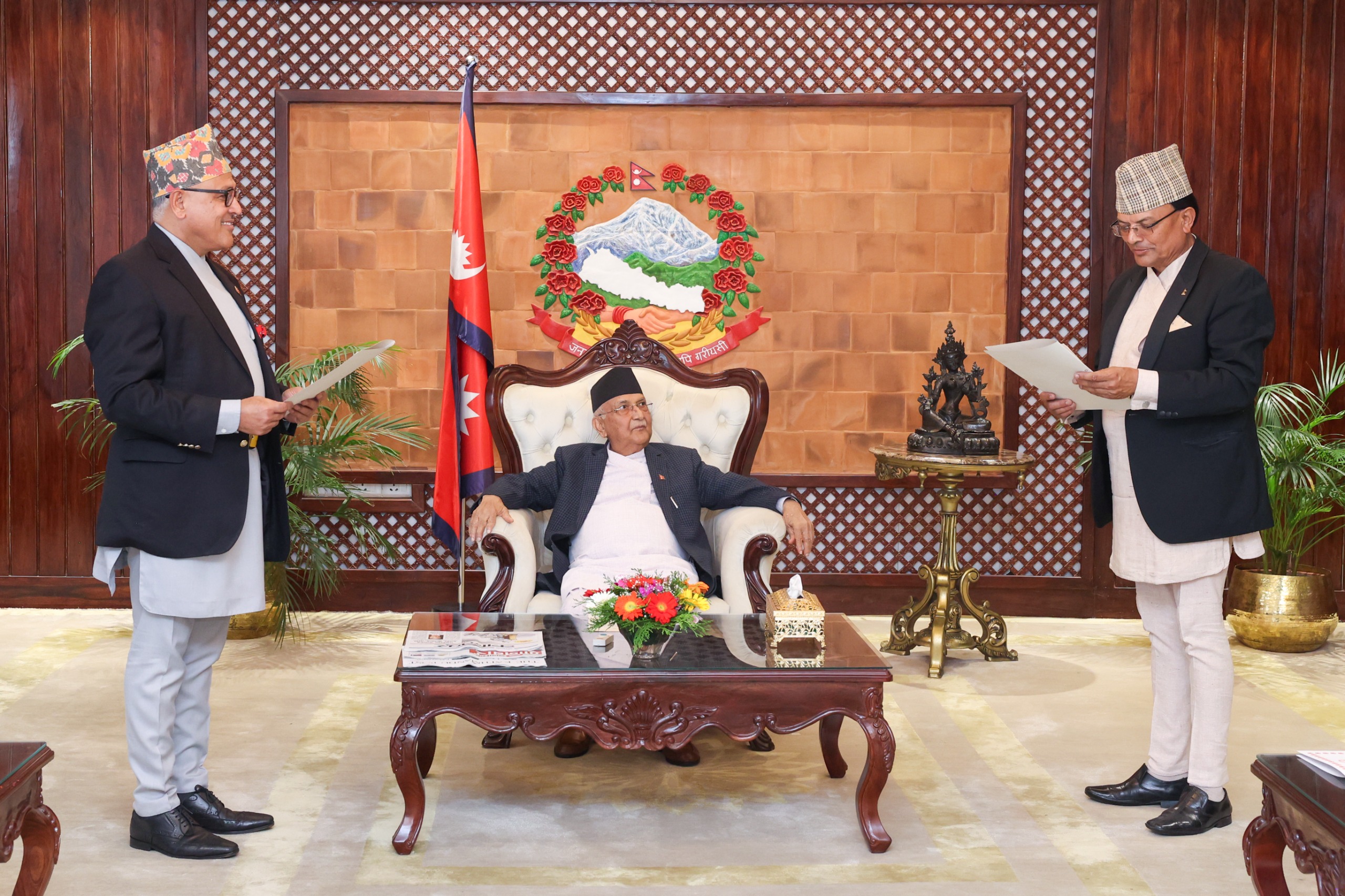 काठमाडौँ, २७ वैशाख, प्रधानमन्त्री केपी शर्मा ओलीको उपस्थितिमा विदुुषी योगमाया हिमालयन आयुर्वेद विश्वविद्यालयका नवनियुक्त पदाधिकारीहरुको आज पद तथा गोपनीयताको सपथ भएको छ ।