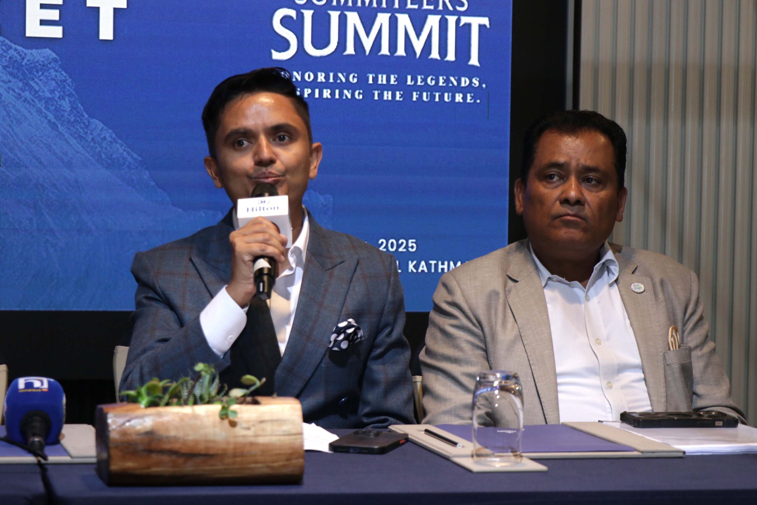 सुदर्शन नेपाल अध्यक्ष एभरेष्ट एलाइन्स नेपाल यो तस्वीर एभरेष्ट समिटर्स समिटको होटल हिलटनमा भएको पत्रकार सम्मेलनमा लिएको तस्वीर हो ।