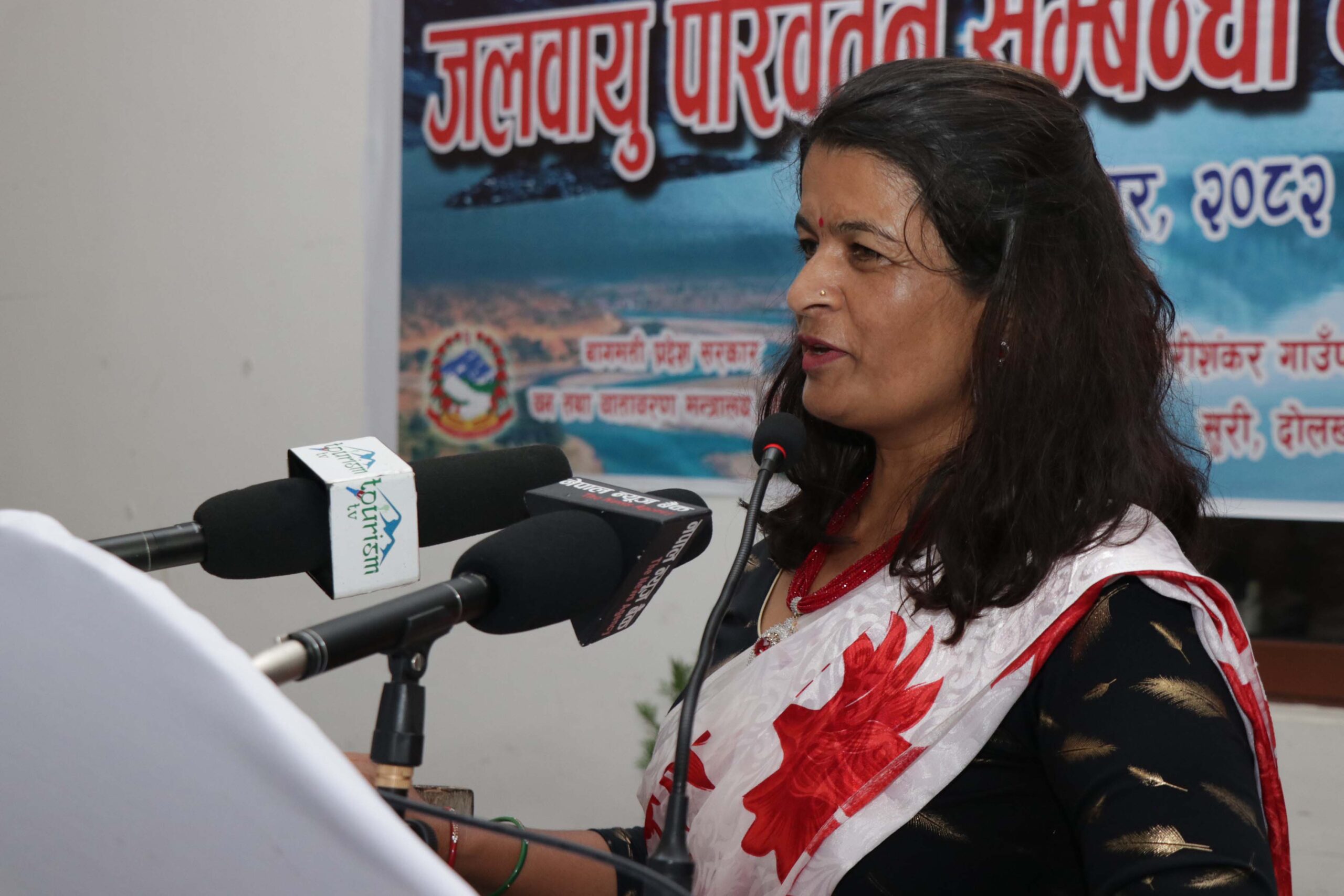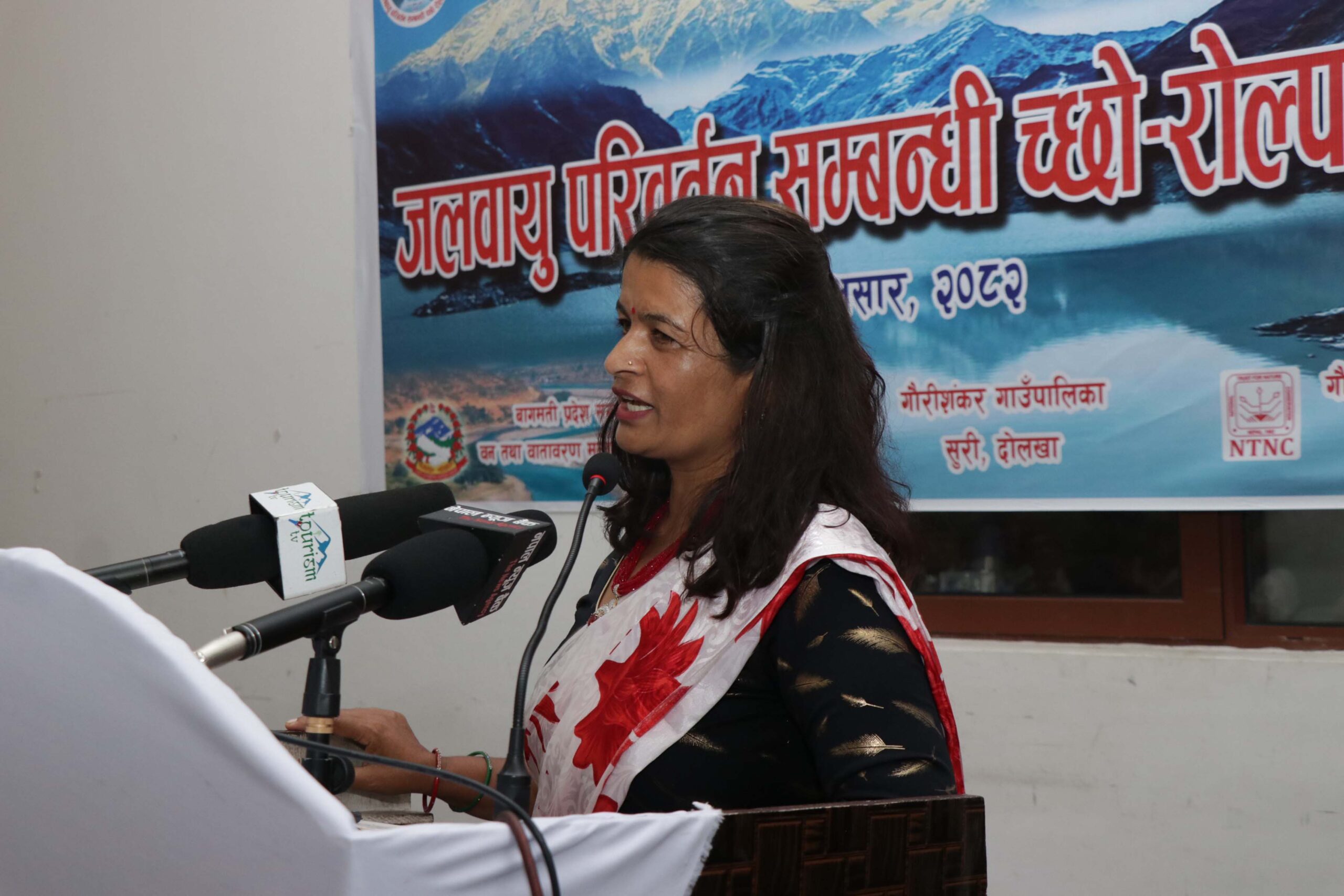 गायत्री घिमिरे उप/ध्यक्ष्य मेलुङग गाउँपालिका च्छो रोल्पा सम्बाद कार्यक्रम दोलखाको सिगटीमा भएको कार्यक्रममा लिएको तस्वीर हो ।