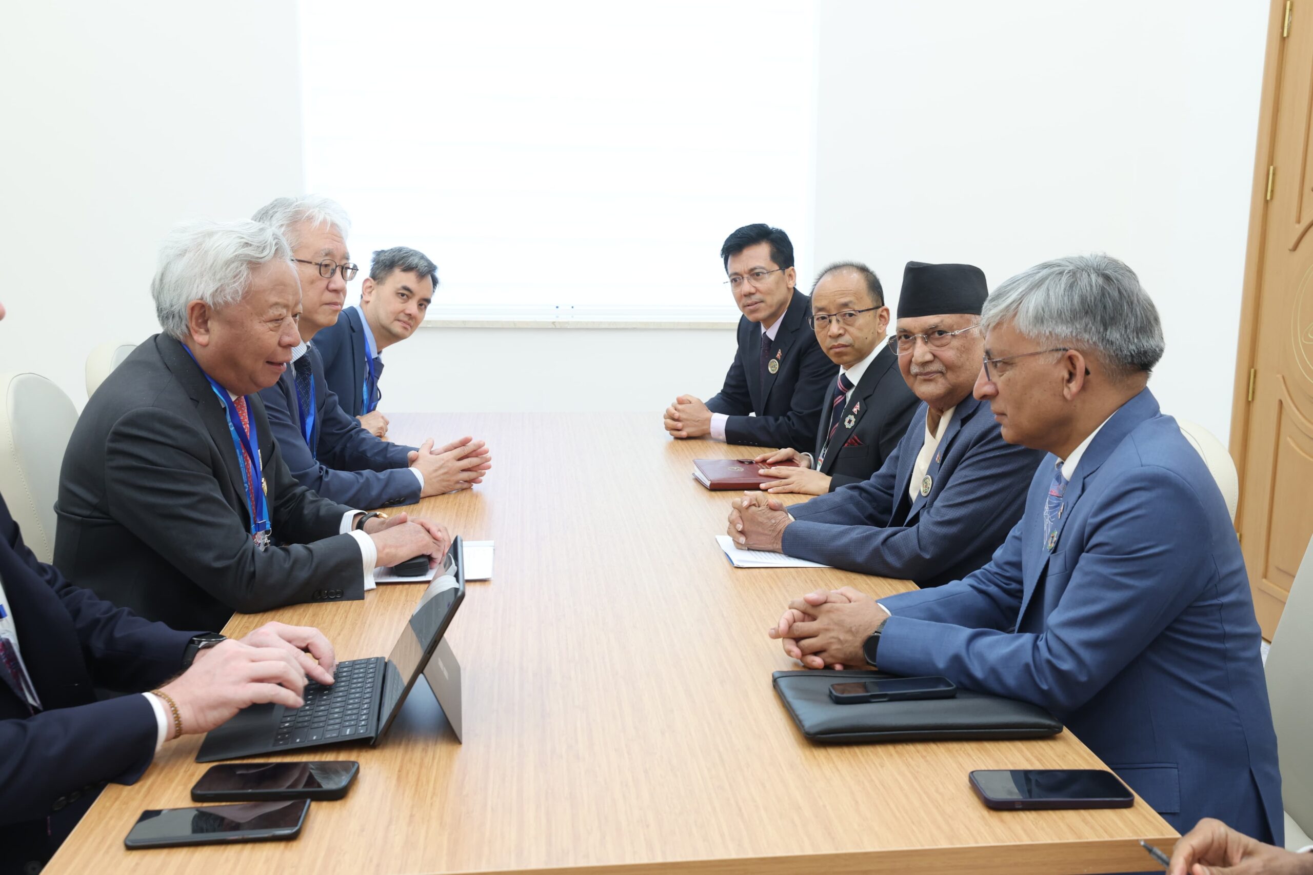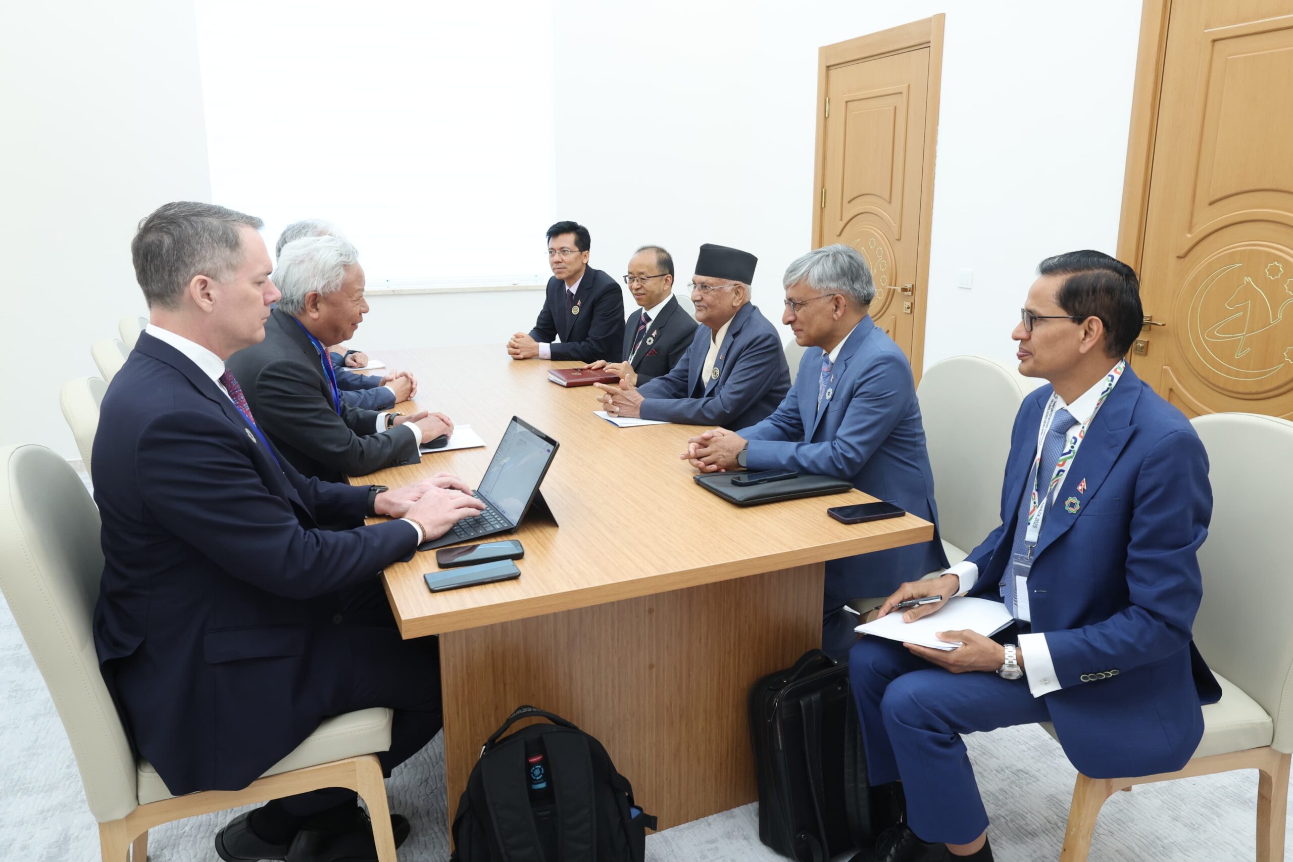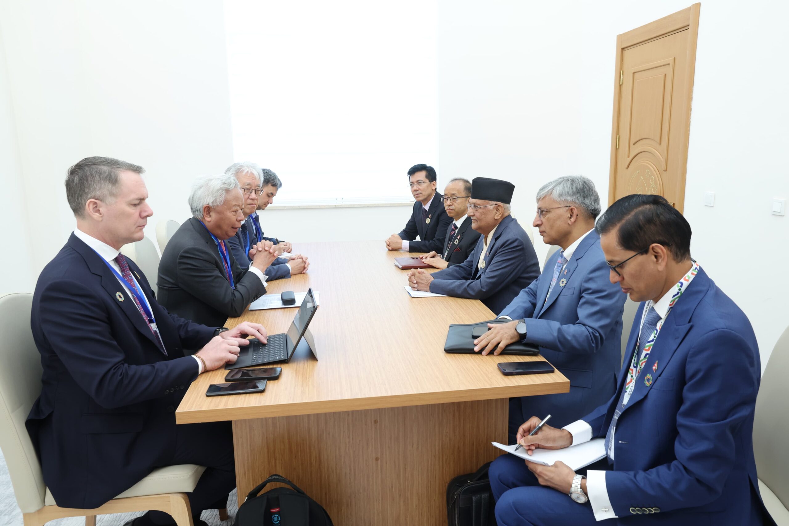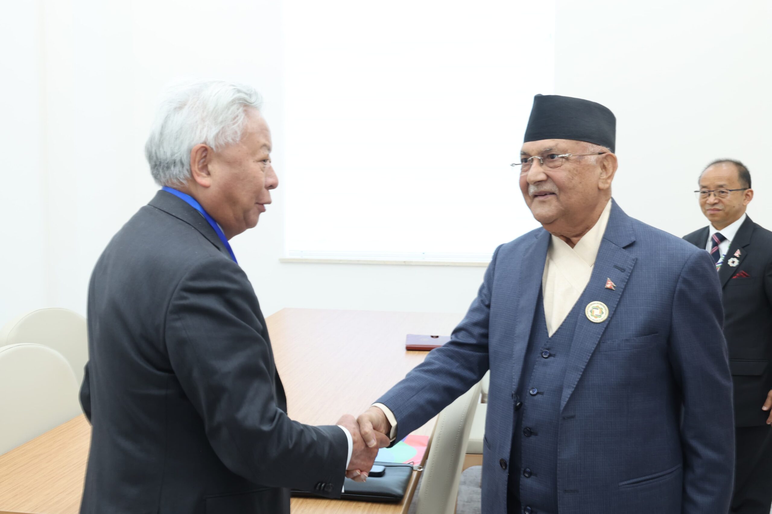 तुर्कमेनिस्तान, २२ साउन । प्रधानमन्त्री केपी शर्मा ओलीसँग एसियन पूर्वाधार लगानी बैकका अध्यक्ष जिन लिम्बुननले आज शिष्टाचार भेट गर्नुभएको छ । तुर्कमेनुस्तानको आवाजामा जारी भूपरिवेष्टित विकासशील राष्ट्रहरूको तेस्रो संयुक्त राष्ट्रसङ्घीय सम्मेलनका क्रममा उहाँहरुबीच साइडलाइन भेट भएको हो ।