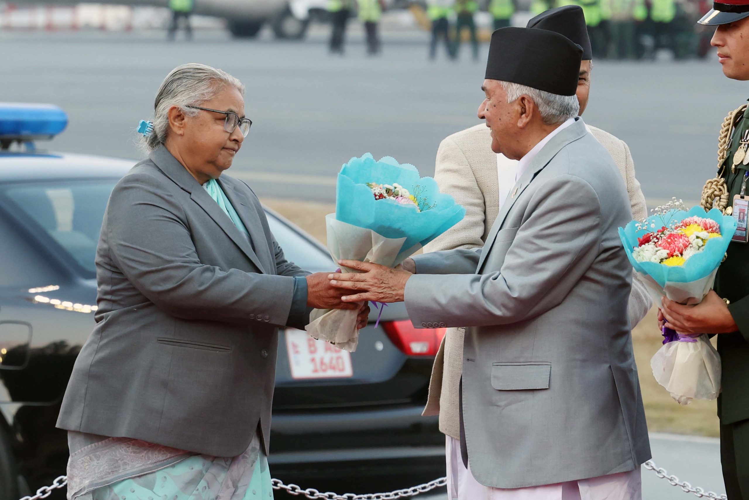 PM Shushila karki and president Ram chandra poudel wel come in Tribhuwan international airport of nepal wher returna back in nepal