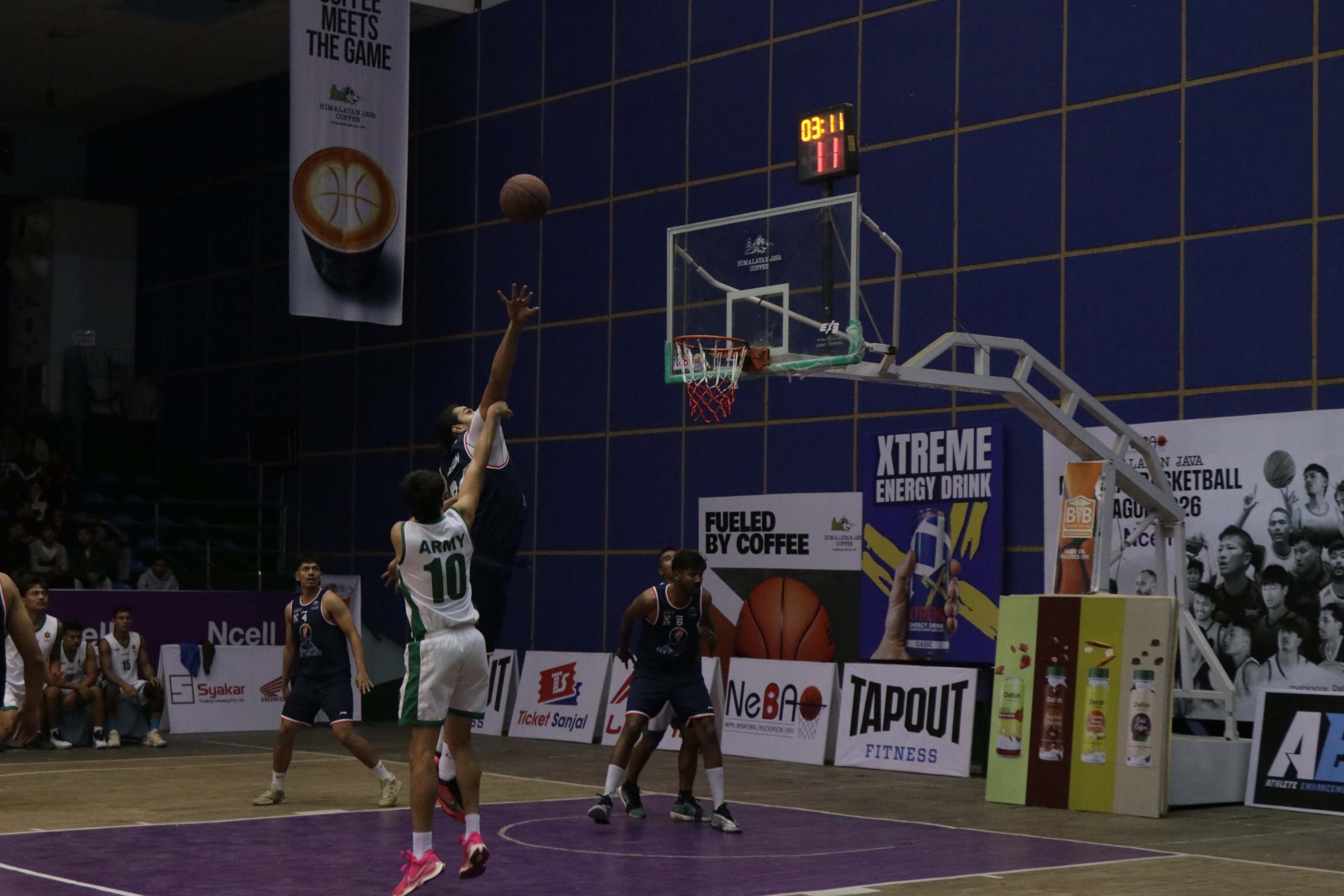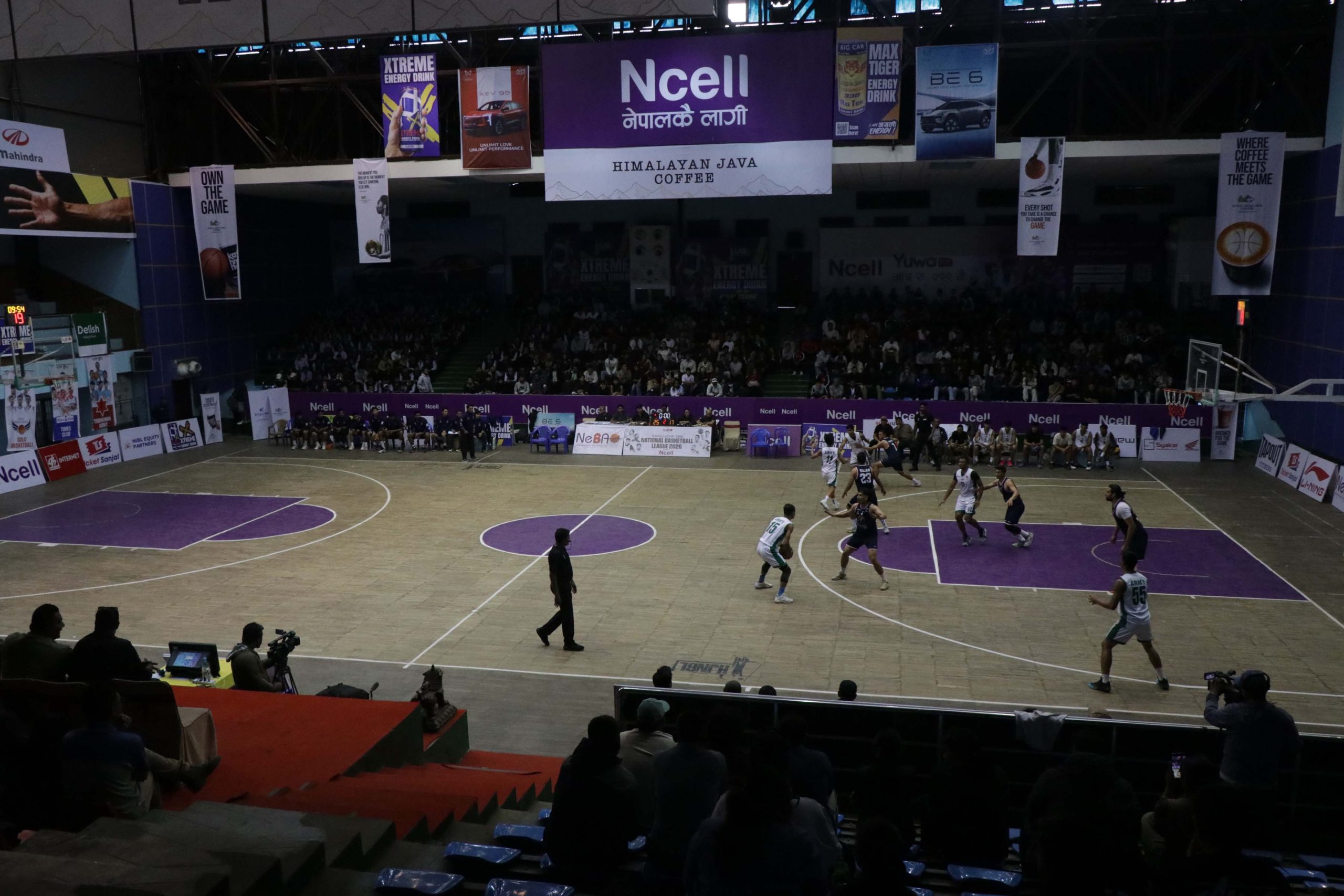 हिमालयन जाभा नेशनल बास्केटवल लिग २०२६ को लिग खेल समाप्त पछि क्यालीफाई दशरथ रंगशालामा भएको पहिलो खेल त्रिभुवन आर्मि क्लब र गोल्डेन गेट विच भएको खेलमा लिएका तस्वीरहरु